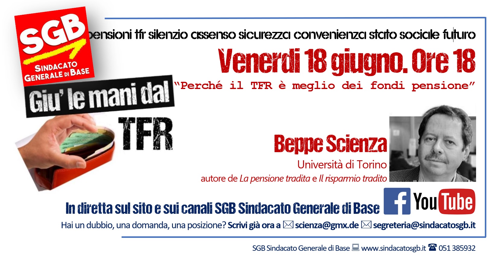 14 Giugno 2021 Evento Facebook 18 giugno 2021 ore 18 – “perché il TFR è meglio dei fondi pensione” HomeCircolari Albo SindacaleEvento Facebook 18 giugno 2021 ore 18 – “perché il TFR è meglio dei fondi pensione” Locandina-Fb-Scienza Allegati biografia-CV-ScienzaGiuseppe-2017 (1) (32 kB)body (1) (24 kB)